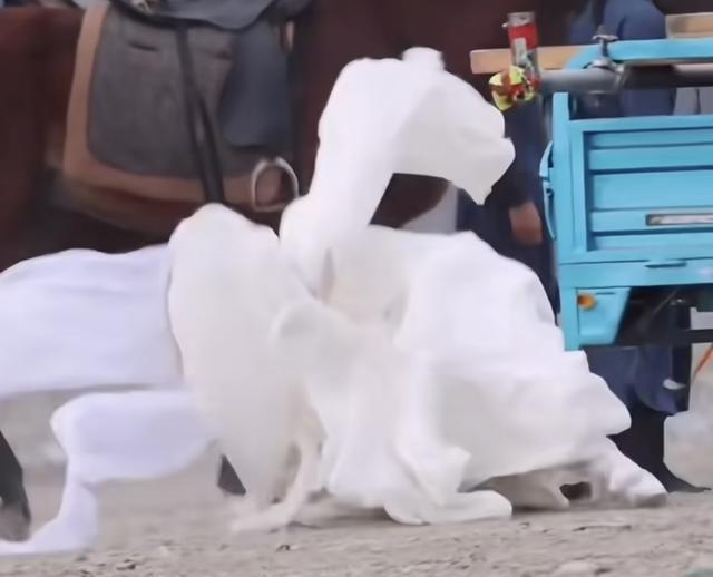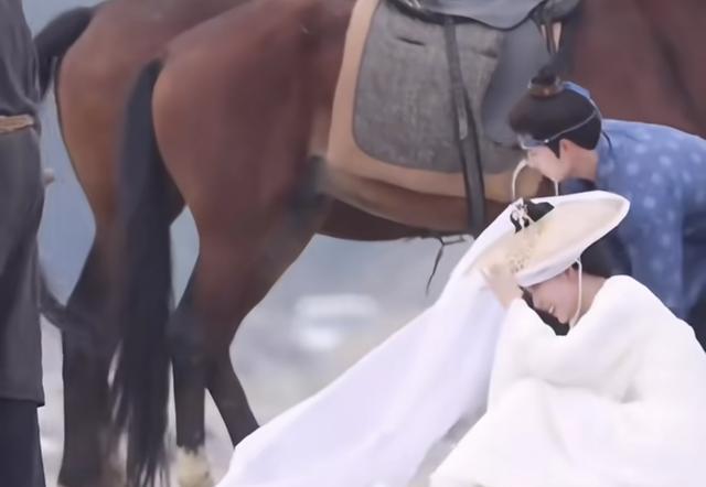 却不料因为头纱太长的原因,被同剧组的男演员不小心踩到了,导致孟子义整个人往后倒,摔在了地上。